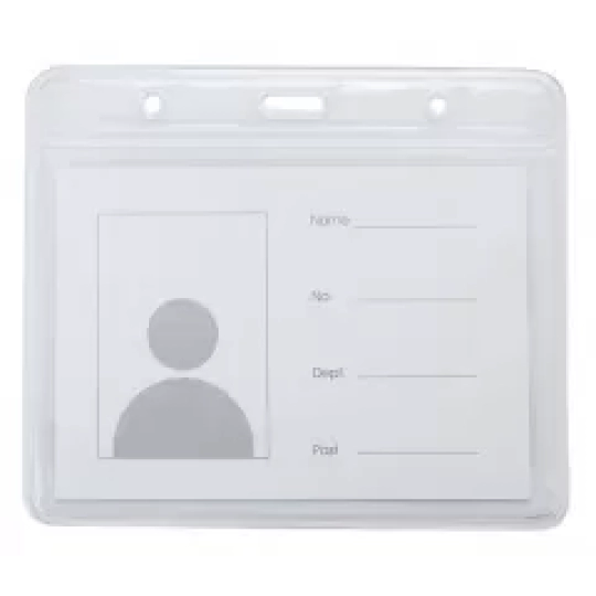 - Bảng tên dẻo 3 lỗ ngang là sản phẩm thẻ đeo 3 lỗ phía trên bằng nhựa dẻo khổ ngang 6x8,5cm rất phổ biến trong giới văn phòng.