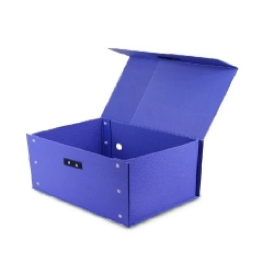 - Sản phẩm với nguyên liệu làm bằng bìa giấy cứng, được dán 1 lớp simily xanh dương bên ngoài với hình dáng như 1 chiếc hộp hình chữ nhật, có miếng dán đóng mở chắc chắn giúp lưu trữ hồ sơ với số lượng lớn.