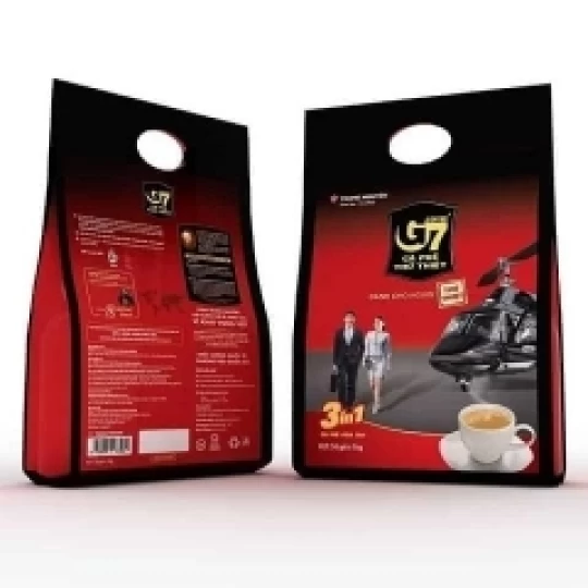 Cà phê Trung Nguyên G7 3 in 1 hoà tan 3 trong 1, hương vị mạnh, đúng sở thích uống cà phê đen của người Việt, giữ được vị đắng thật của cà phê rang xay đem đến cho người thưởng thức một ly cà phê thứ thiệt.