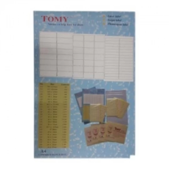 Decal Tomy A4 là loại Decal có khổ A4 được chia thành nhiều hình dạng phù hợp với từng mẫu mã in tem phiếu trên sản phẩm.