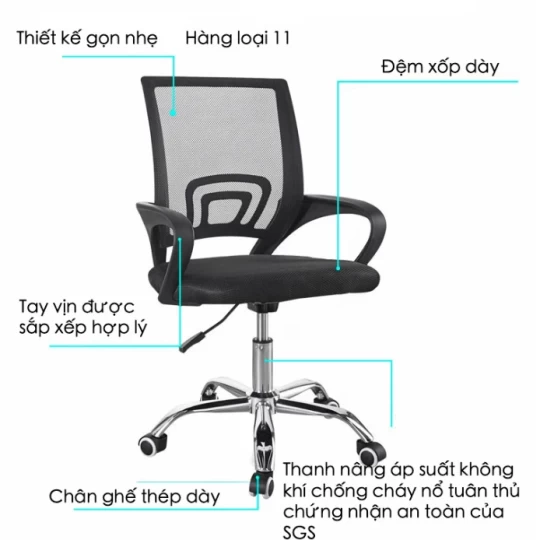 Chất liệu: Lưng lưới, đệm mút, chân thép