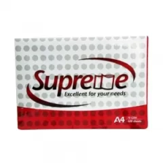 - Giấy Supreme A4 70 gsm là sản phẩm giấy in photo mang nhãn hiệu Supreme của Thái Lan, định lượng 70gsm, khổ giấy A4 (kích thước 21*29,7cm)