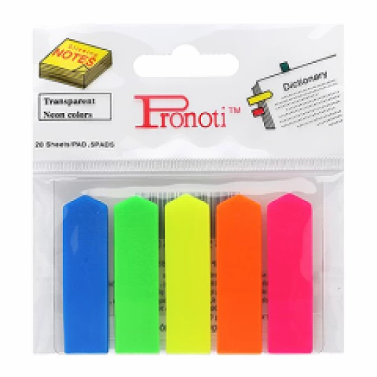 - Pronoti là nhãn hiệu nổi tiếng về giấy note, một trong những sản phẩm đó là Giấy note 5 màu nhựa Pronoti , sản xuất theo công nghệ sản xuất giấy đến từ Đài Loan. An Lộc Việt luôn đảm bảo cung cấp đến khách hàng các loại giấy note - phân trang giá rẻ, chất lượng tốt nhất.