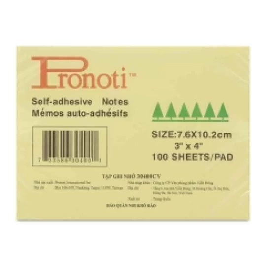 Giấy note vàng 3x4 Pronoti 7,6cmx10,5cm