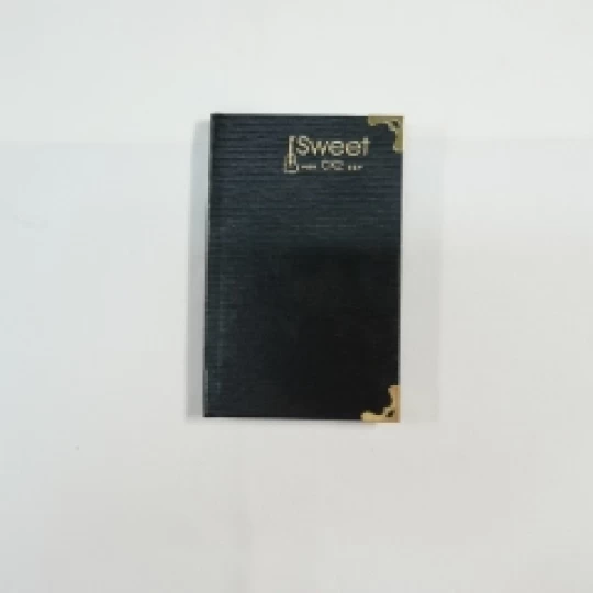 - Là sản phẩm sổ tập dạng sổ bìa da cứng màu đen với các góc bo tròn viền vàng trau chuốt, giấy kẻ ngang dày 100 trang. Sản phẩm thích hợp cho việc ghi chú nội dung quan trọng tại các cuộc họp tại văn phòng công ty.