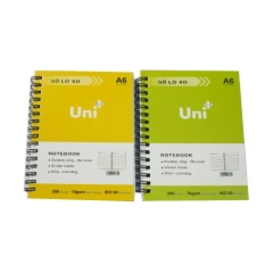 - Là sản phẩm sổ tập thương hiệu Uni Plus dạng ghi chú khổ A6, giấy kẻ ngang trắng đẹp ĐL 70gsm, dày 200 trang có lò xo bên mép trái thuận tiện cho việc ghi chép hoặc xé rời các trang cần thiết phục vụ cho công việc văn phòng.