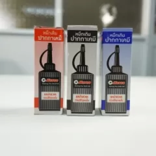 Quy cách: màu phổ biến : xanh - đỏ - đen, dung tích 30cc. Màu mực được sử dụng phổ biến là màu xanh dương.