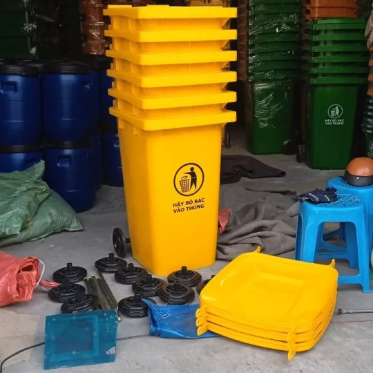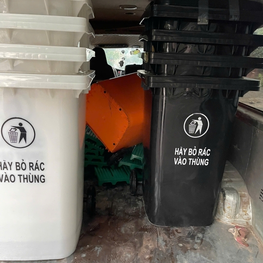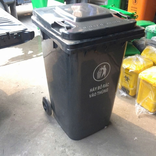 - Thùng rác công cộng 240l có trọng lượng nhẹ, dễ dàng di chuyển, có độ dẻo tương đối, có khả năng chịu được va đập của các vật khác lên thùng rác, có độ bóng sáng đẹp mắt và đặc biệt là có thể chịu được cả thời tiết nắng mưa thất thường như ở Việt Nam.