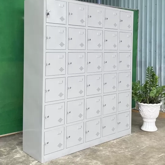 Chất liệu: Sắt sơn tĩnh điện cao cấp, Ngăn, vách, nóc, đáy, lưng tủ 0,5mm, cánh cửa, hông tủ, đố 0,7mm tai khóa móc 1li 5.
