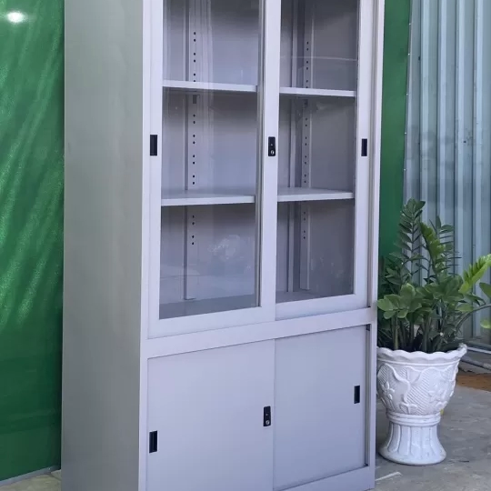 Trên 2 cánh kính lùa, dưới 2 cánh sắt mở