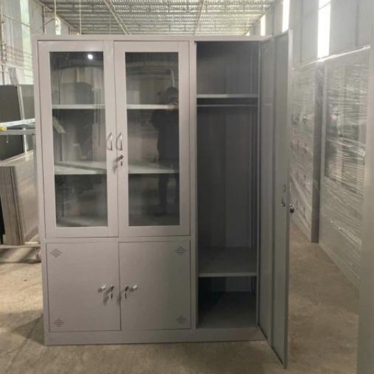 Tủ 3 buồng, 2 cánh kính và 3 cánh sắt
